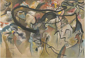 "A great sweeping black line that unifies Composition V like a resounding Klag strives as the fest obvious syncretic motif, suggesting at once the 'last trump' of the apocalyptic final judgment and the trump of the death angel Israfil calling Iskandar back to live. (99) seething abundance, fervilhante , efervescência.